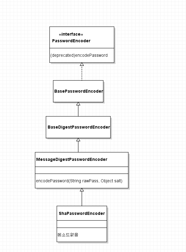ShaPasswordEncoder를 상속하고 구현한 클래스와 인터페이스의 전체 모습입니다.