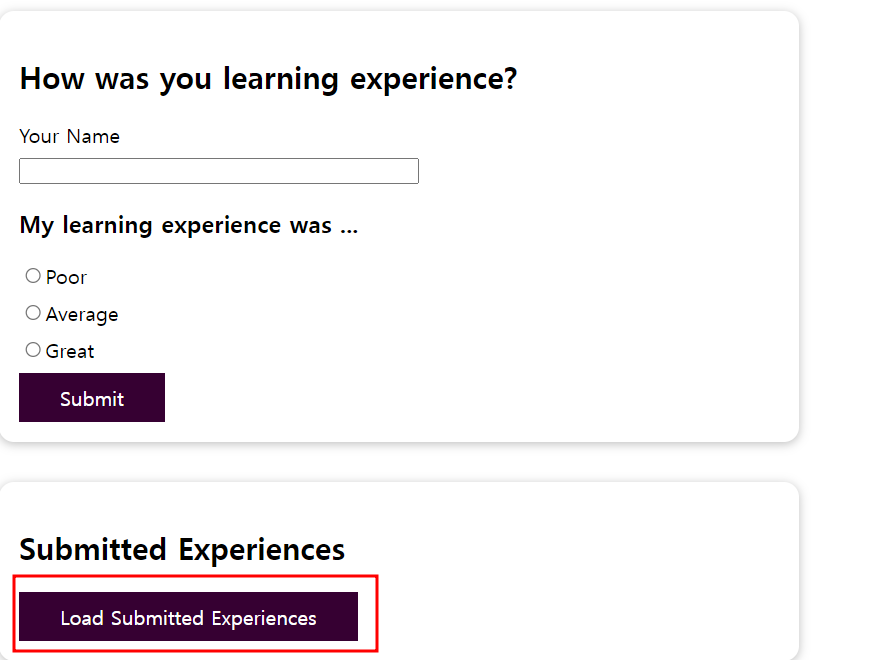 Load Submitted Experiences 버튼을 클릭하면