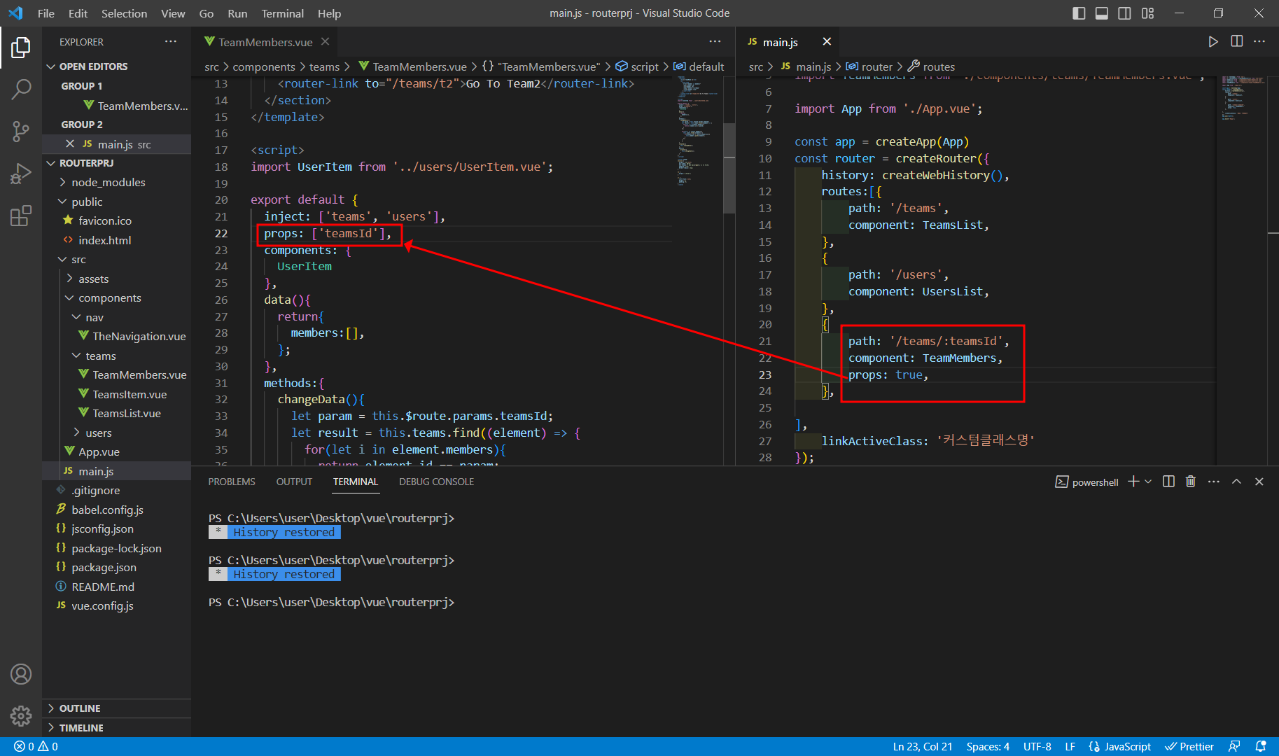 main.js의 라우터 설정에서