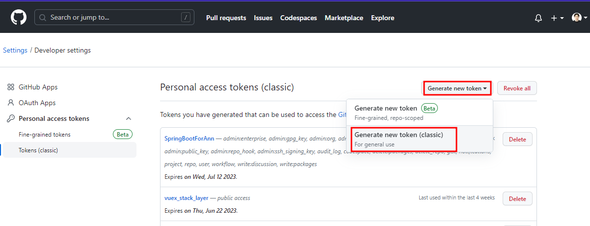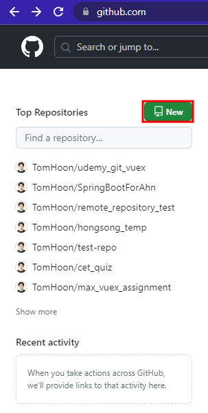 3-1. 깃이 연동된 프로젝트를 원격 저장소와 연결시키기 - 토큰 생성 후 remote 하기