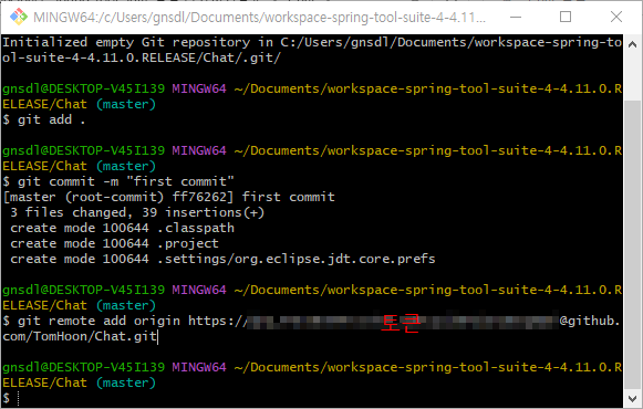 3-2. 깃이 연동된 프로젝트를 원격 저장소와 연결시키기 - 토큰 생성 후 remote 하기