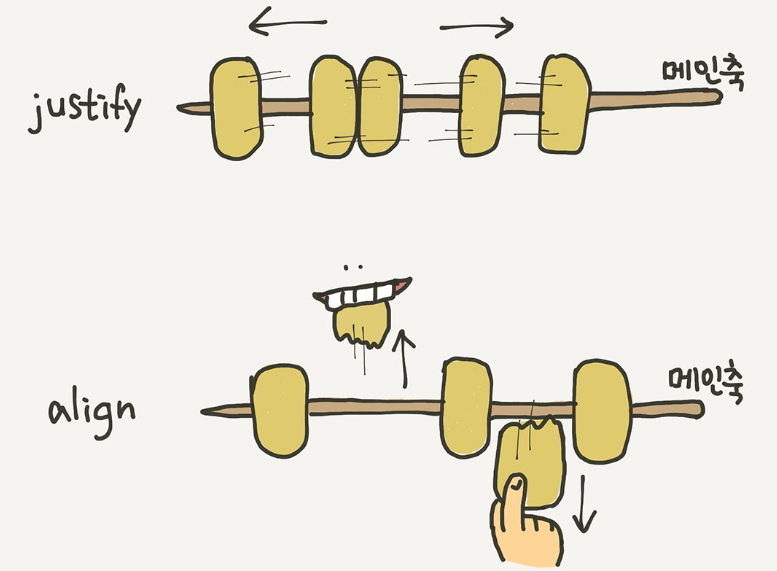 우선 justify와 align에 축에 대해서 배웠다.