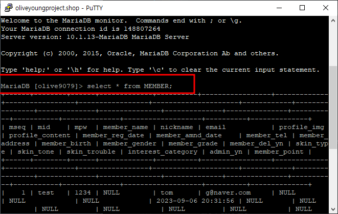 cafe24에서 db비밀번호 설정했었을 것이다. 그걸 입력하면 된다.