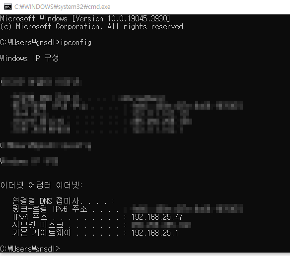사설ip 대역을 192.168.25.0~ 으로 사용하는 것을 알 수 있다.