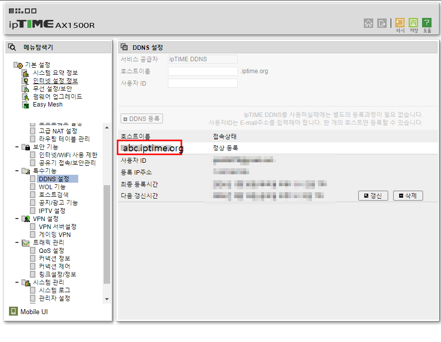 DDNS명.iptime.org:원격관리포트
