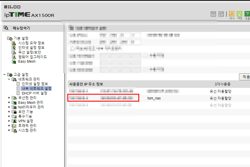 기존에 나스 내부 ip가