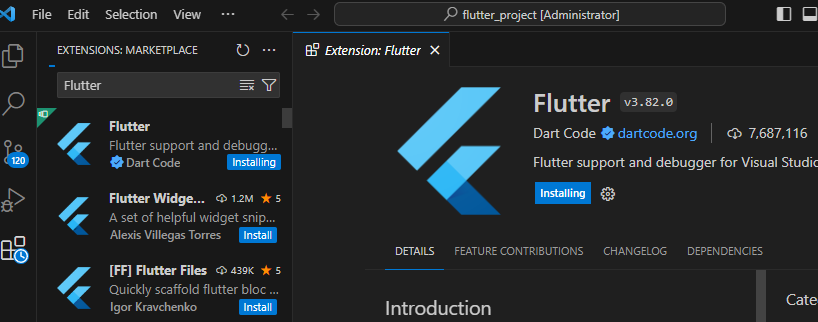 3. vscode로 만든 프로젝트 열기 + Extension의 Flutter 추가하기