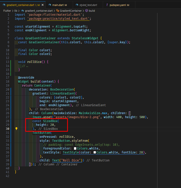 2. 이미지 위젯과 버튼 위젯 사이에 SizedBox 위젯 넣어주기