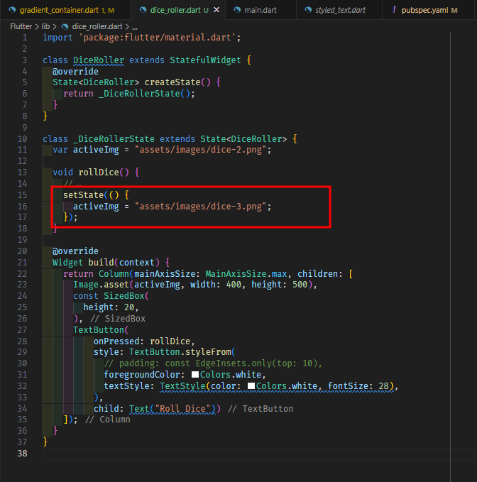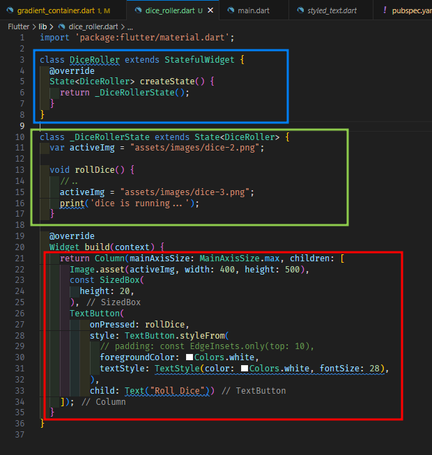 2. StatefulWidget을 상속한 클래스, State를 상속한 클래스 두가지를 만든다.