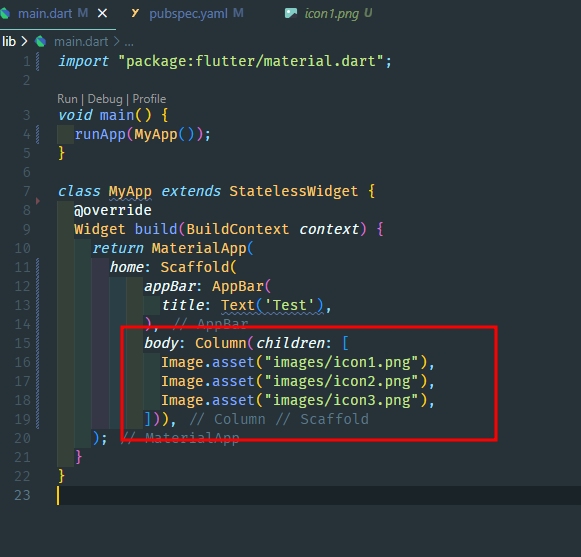 1.pubspec.yaml에서 사용할 이미지 디렉토리 설정