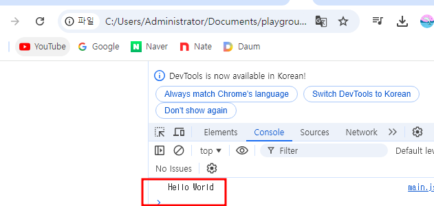 4. main.js를 load한 index.html 파일 만들어서 열어보기