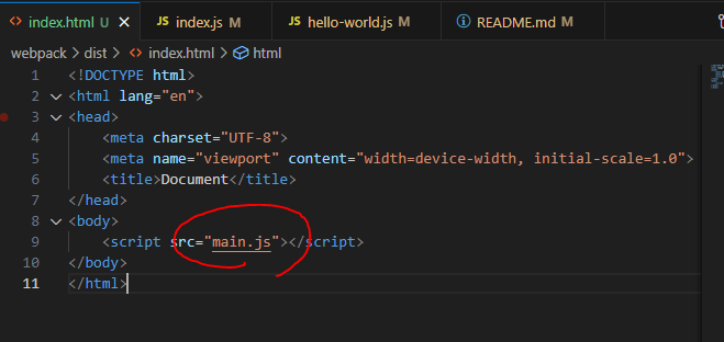 dist 디렉토리에 main.js 파일이 생성되어 있는 걸 확인할 수 있다.