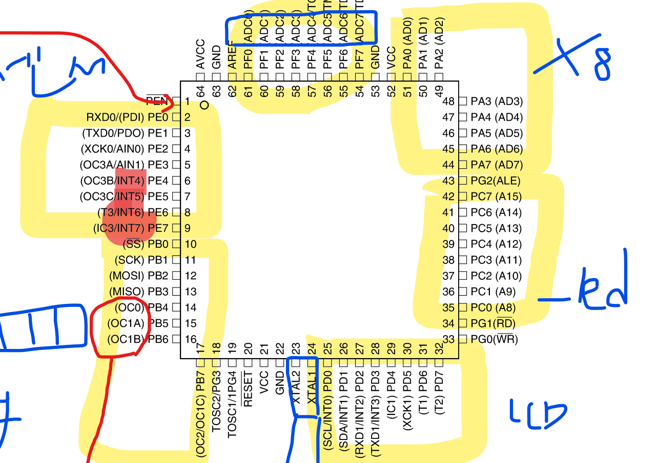 위의 그림은 atmega128의 핀 array다.