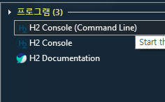 2) 시작 프로그램 > h2 검색 > h2 console 클릭