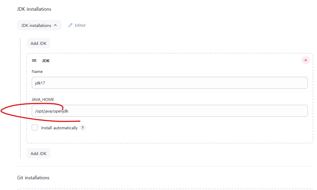 까지만 복사 후 젠킨스 java path설정에 넣어주기