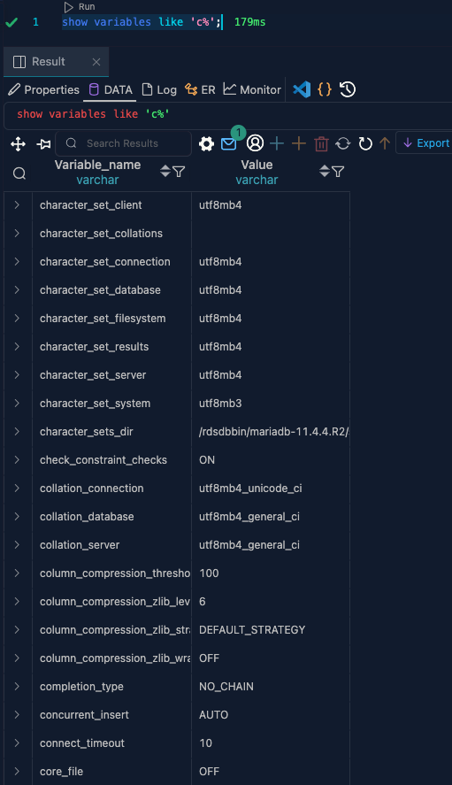 9) 파라미터 그룹으로 설정한 내용 잘 되었는지 확인