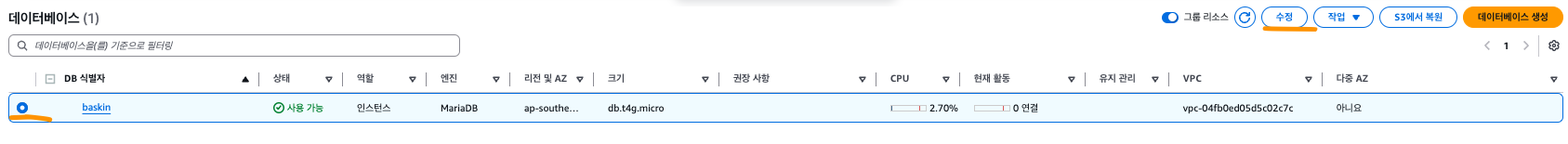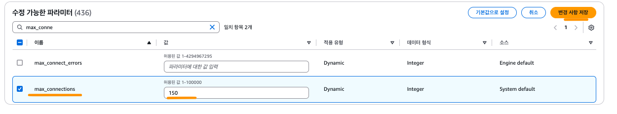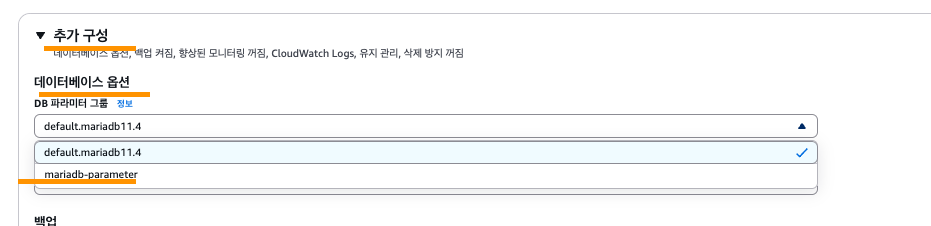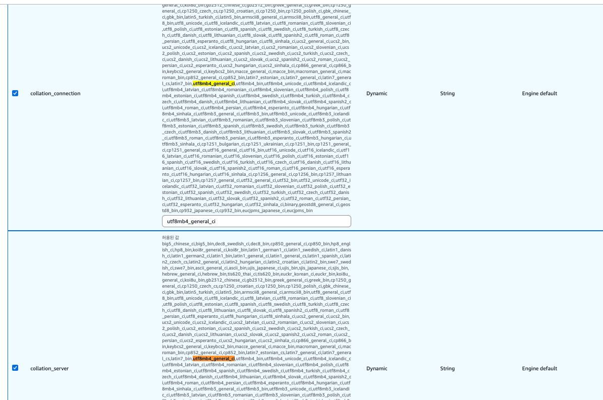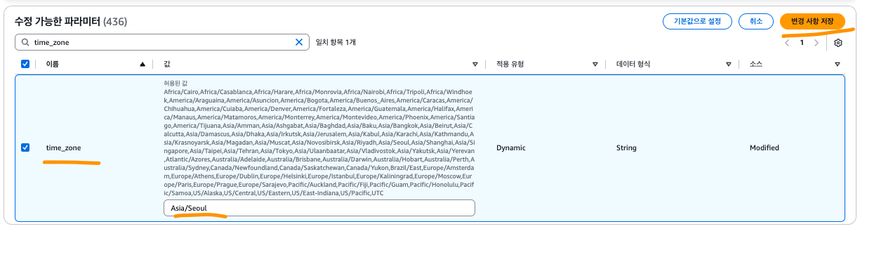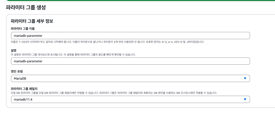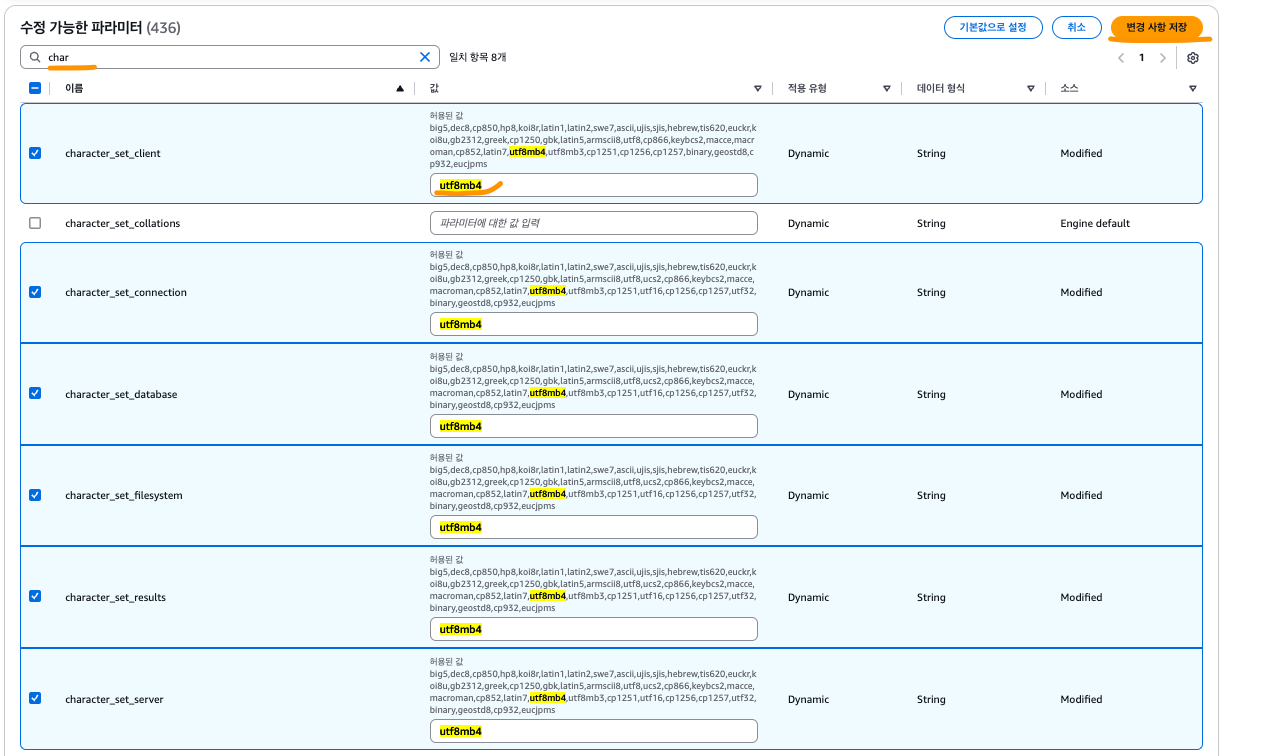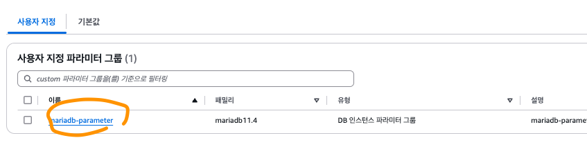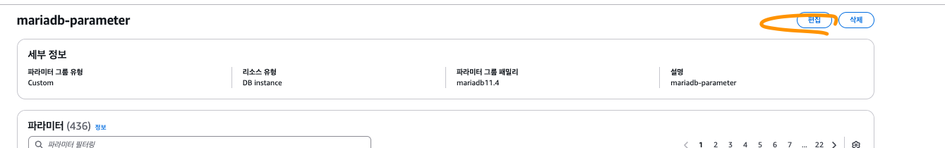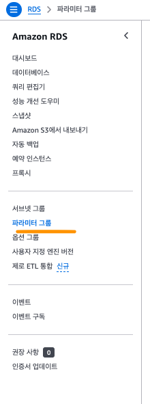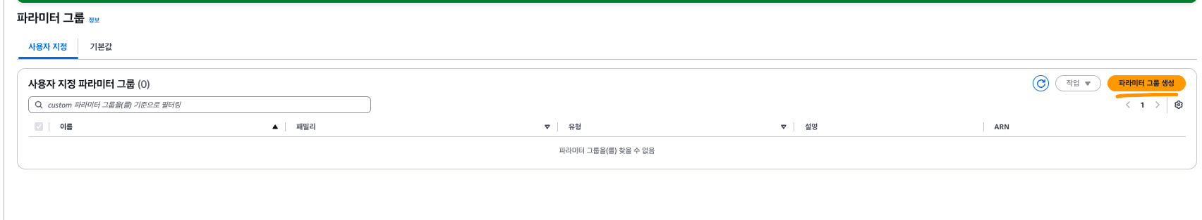 5. DB에서 사용하는 값 설정을 위한 '파라미터 그룹' 셋팅하기