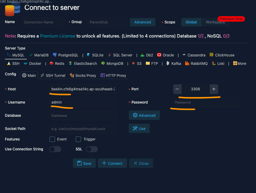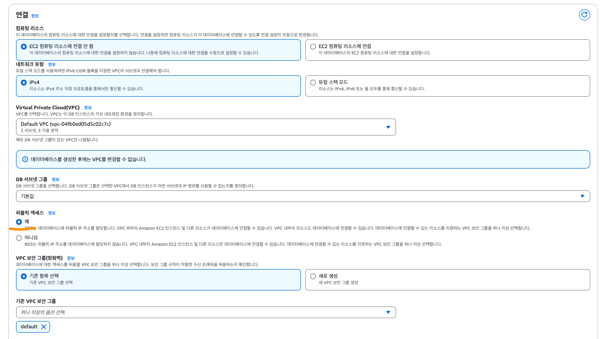 4. 퍼블릭 액세스 '예' (외부접속 허가 여부 설정임)