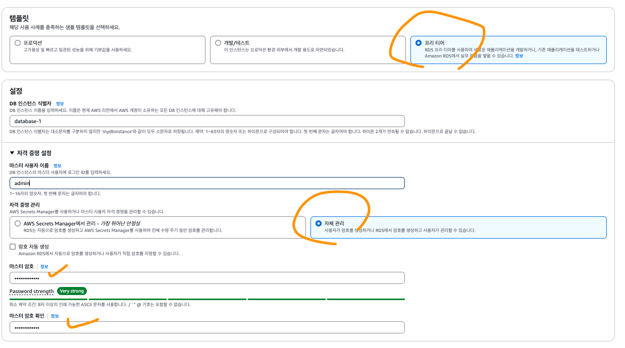 3. 템플릿은 프리티어, 자체관리, 비밀번호 설정하기