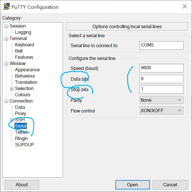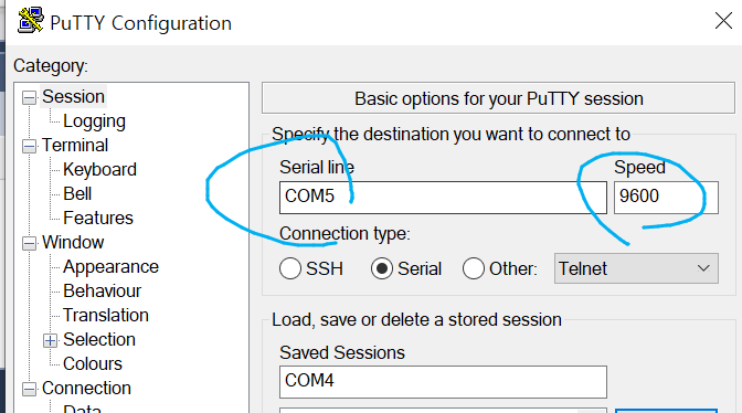 첨에 COM5인 줄 알고 PUTTy 계속 5로 연결함