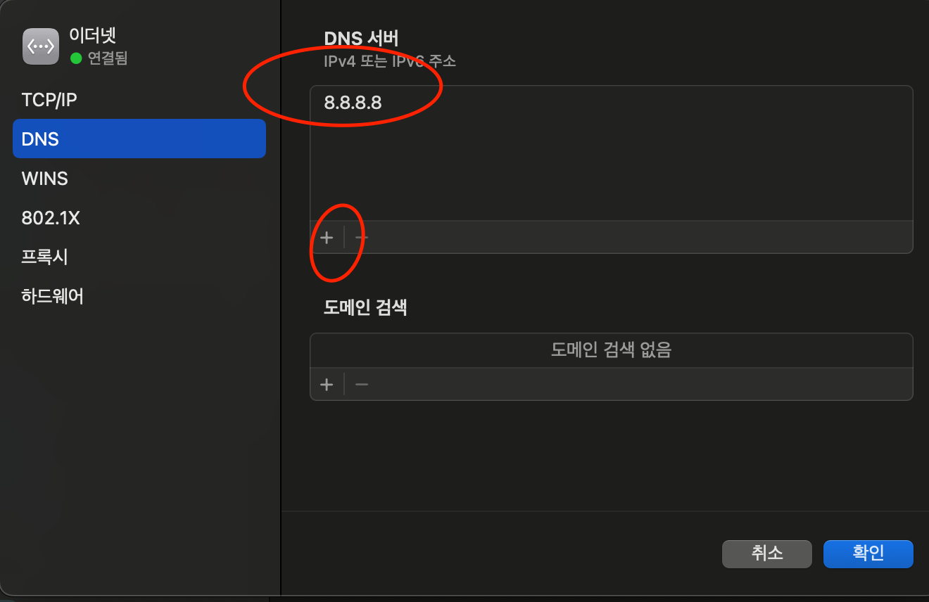 유명한 DNS 서버 아무거나 기입해서 사용하시면 됩니다.