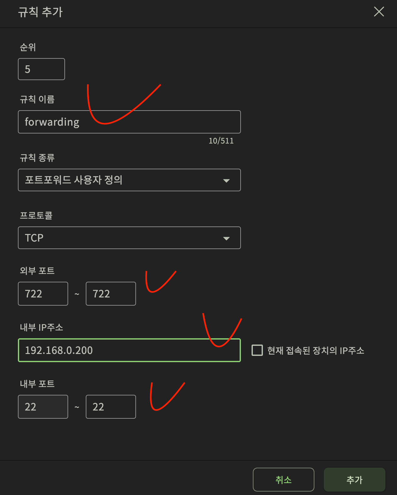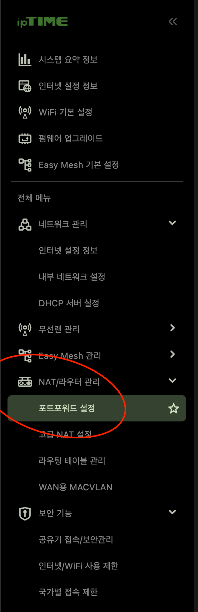 애플리케이션에 따라 포트포워딩 설정을 하기 위해서는