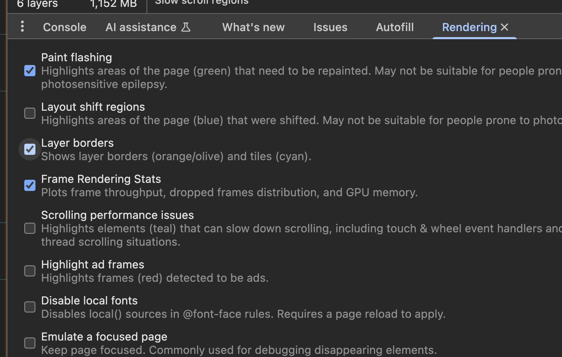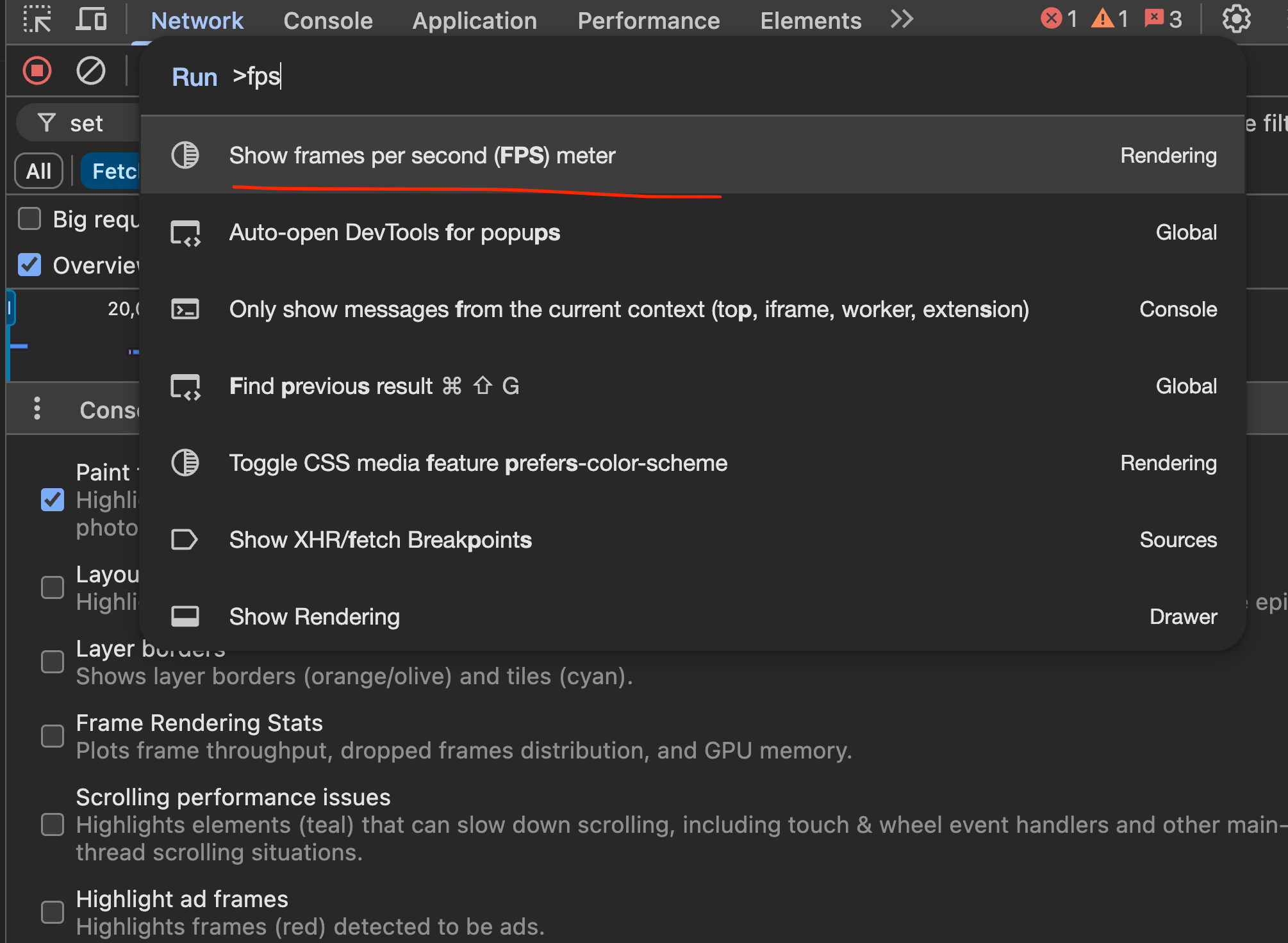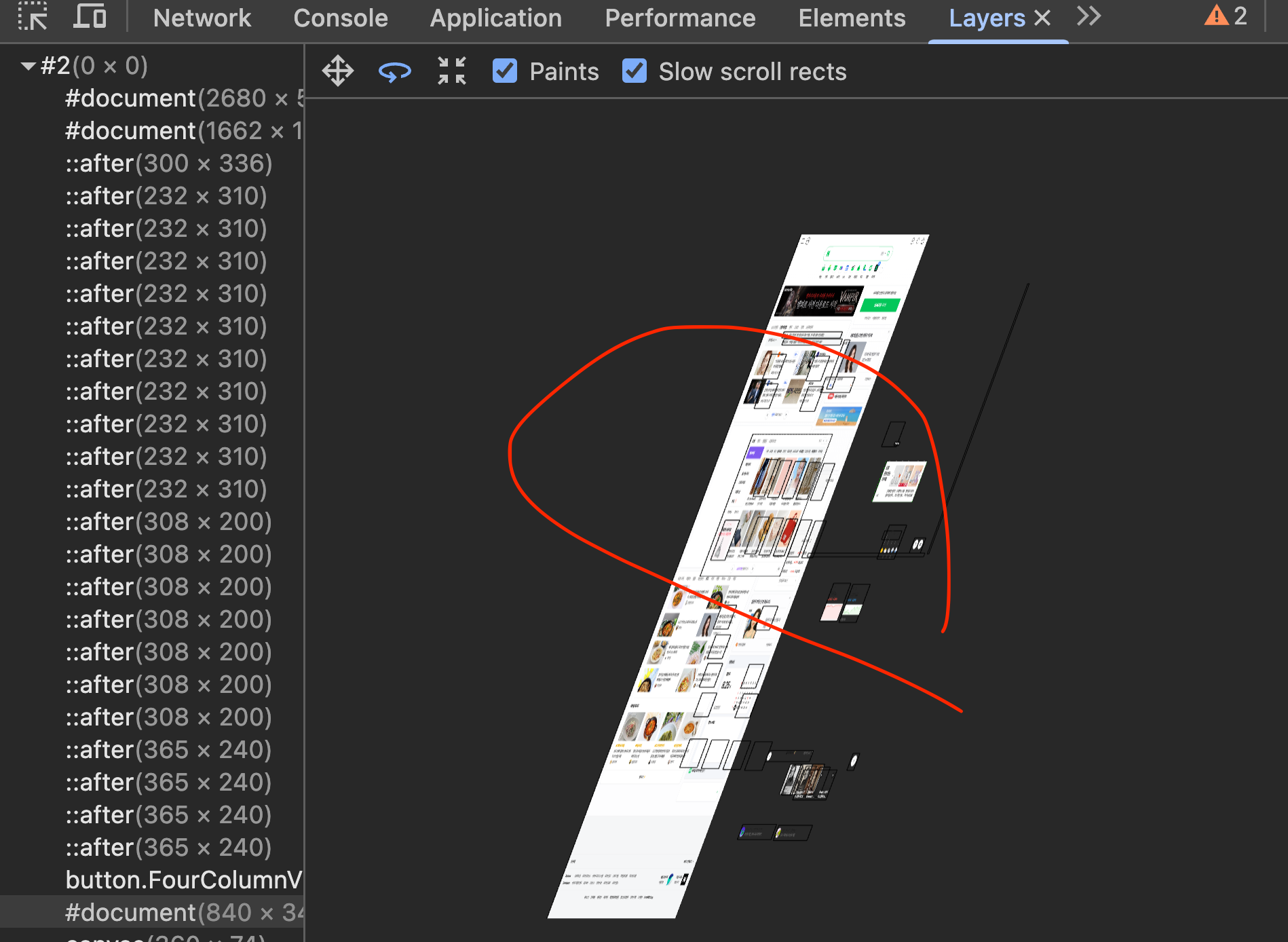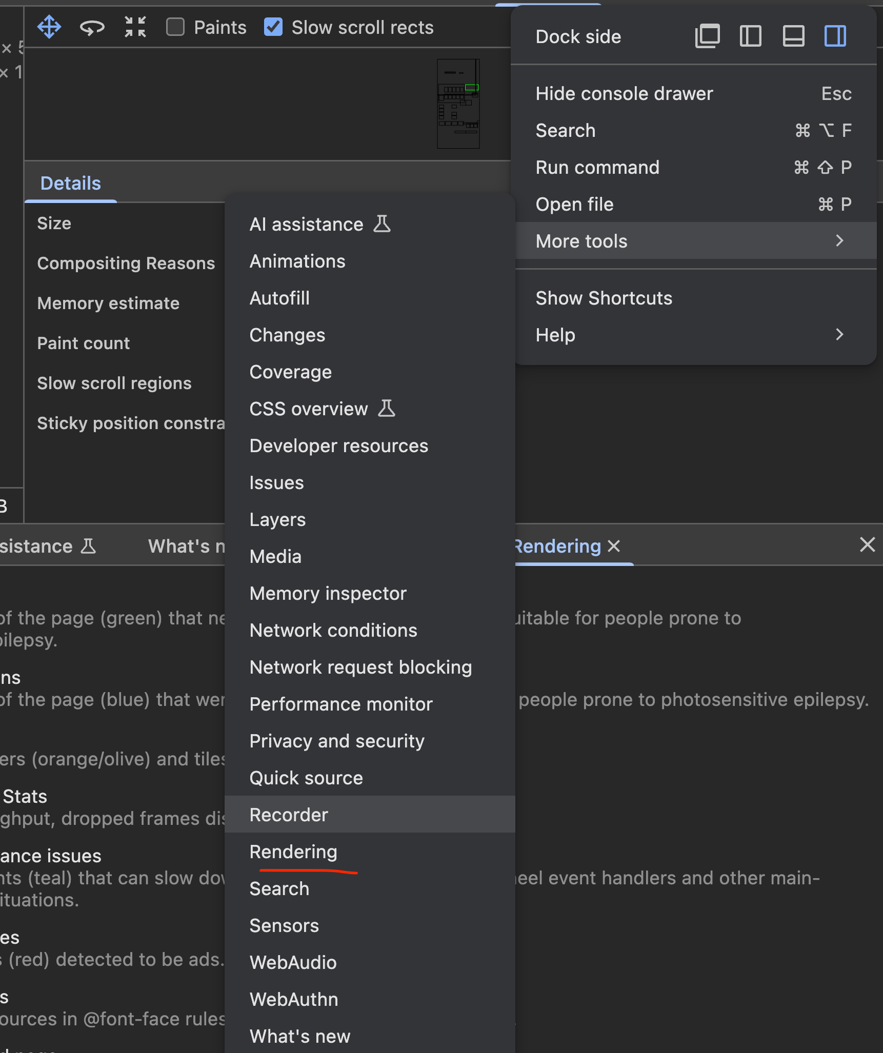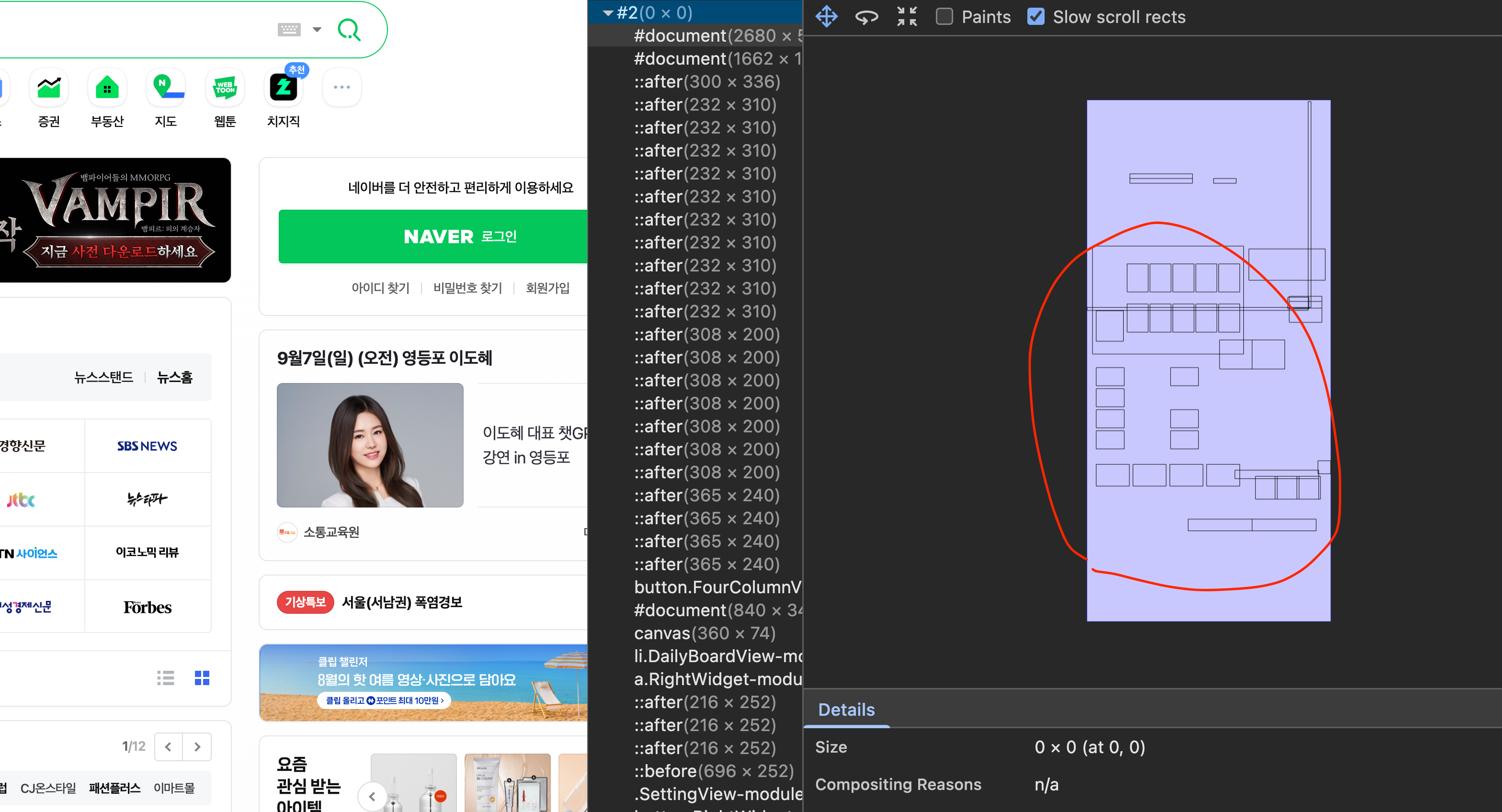 Paint flashing : repaint되는 영역이 하이라이트됨
