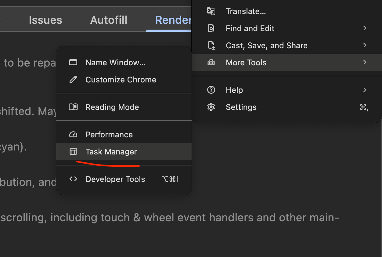브라우저의 더보기 > more tools > task Manager
