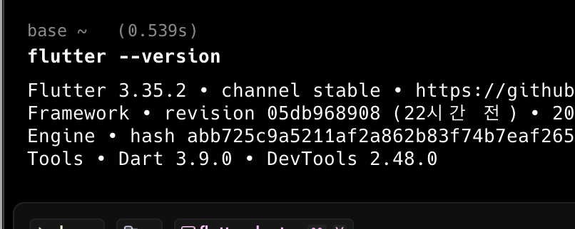 flutter --version으로 설치된지 확인하기