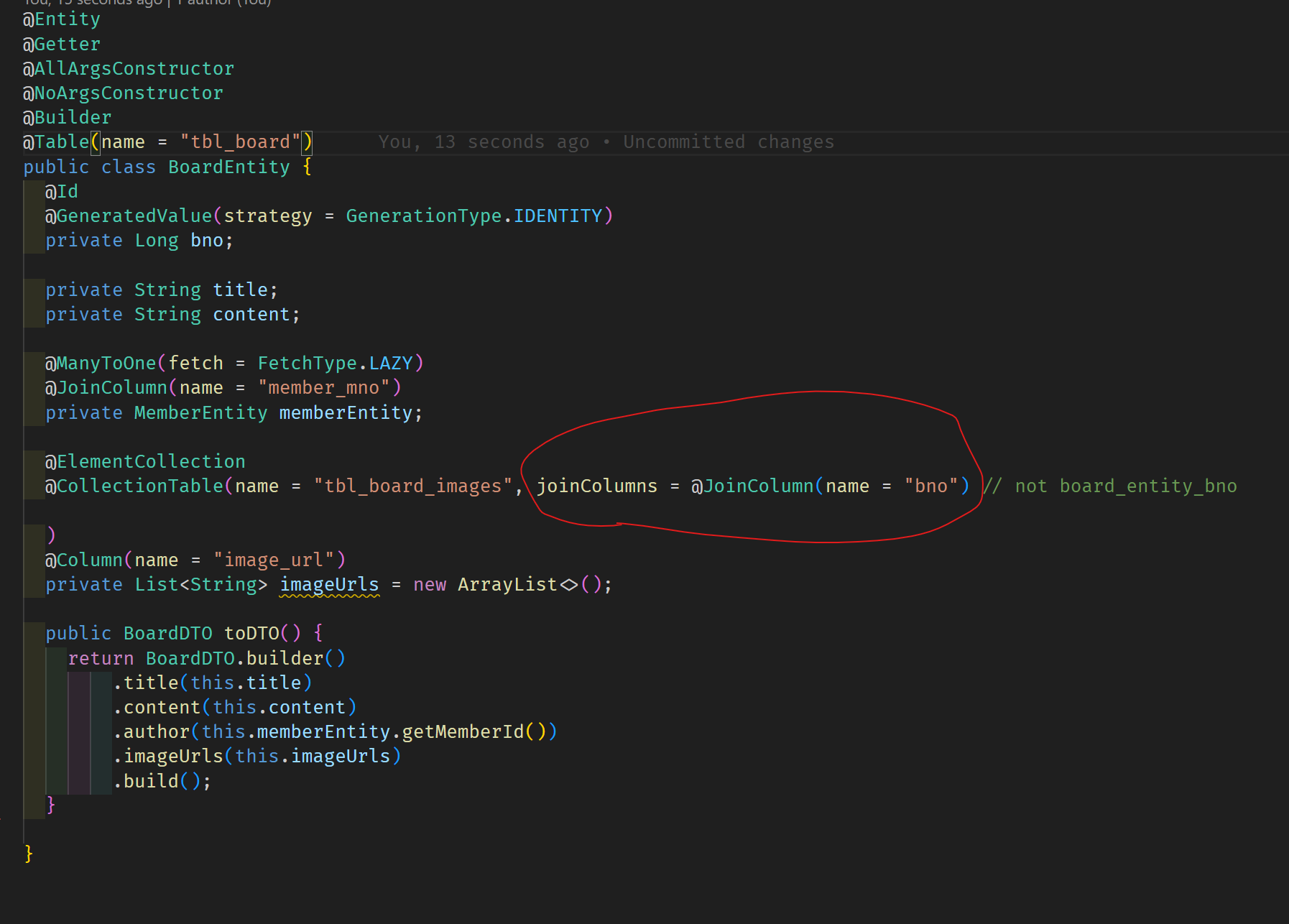 @ElementCollection을 joinColumn 따로 명시하지 않으면