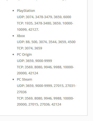 피파에서 공식적으로 사용하고 있다는 포트들이다.