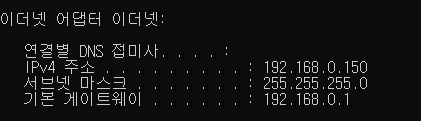 cmd 누른 후 ipconfig 쳤을 때 나오는