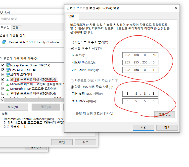 IP주소는 192.168.25.150 이런식으로 되어야함
