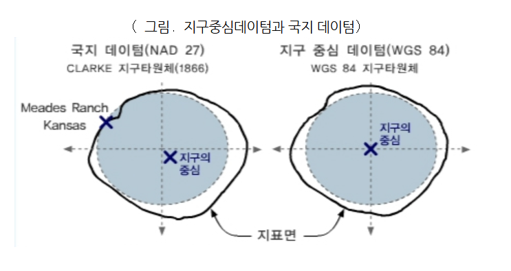 지도를 나타내는 타원체가 여러가지인데